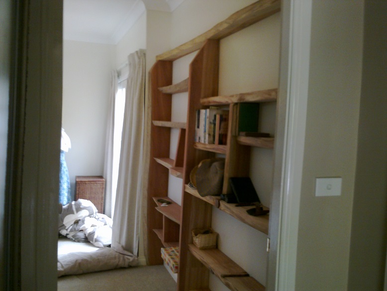Published on September 17, 2015 in Project GalleryFull resolution (778 × 584) ← Previous Next → Hardwood timber slab shelving.